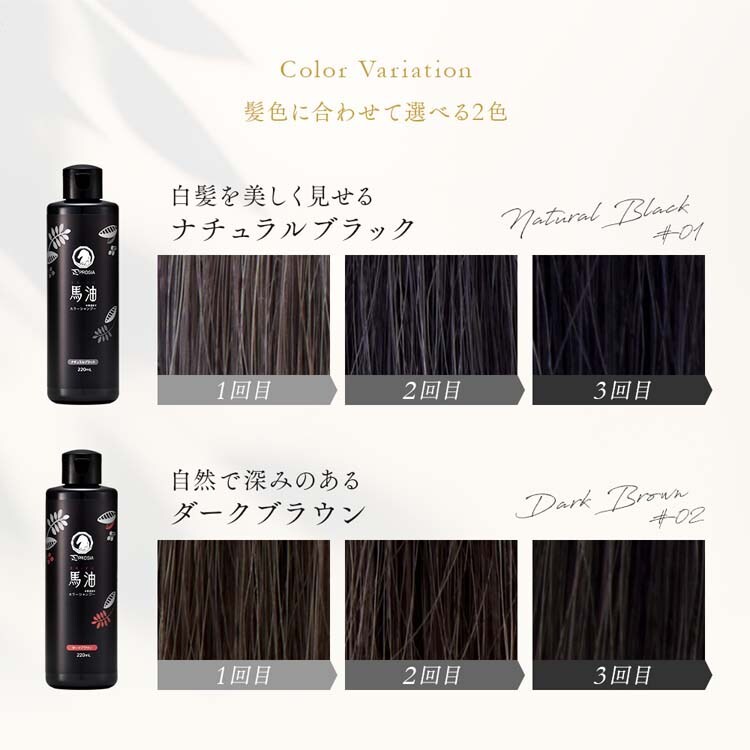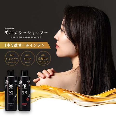 ●髪を洗いながら白髪を染める、国産馬油配合(保湿成分)カラーシャンプー。