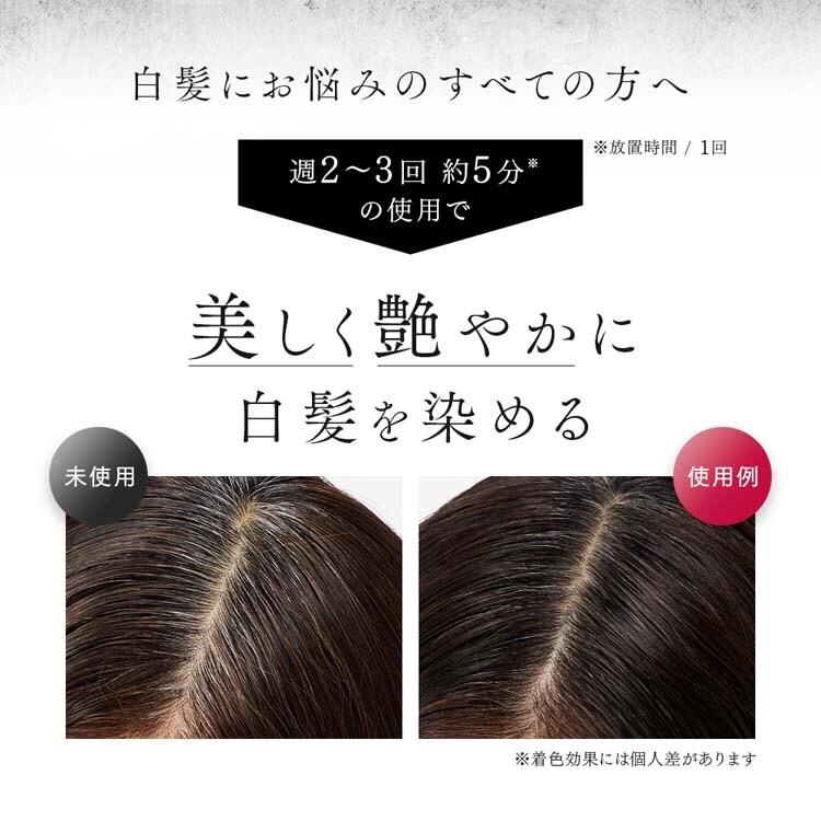 ・髪質や白髪の量により、髪への着色効果や色合いには個人差があります。