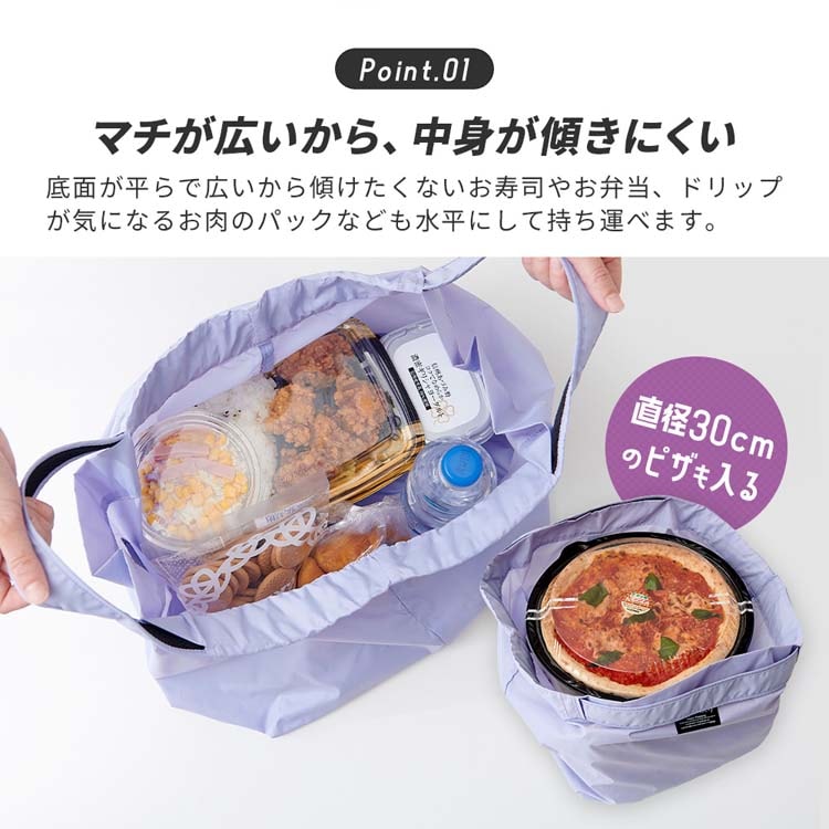 ●直径30cmのピザも傾けずに収納できるエコバッグ。