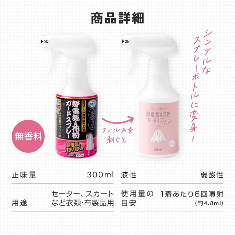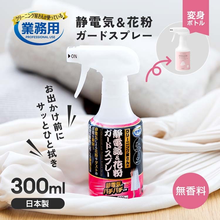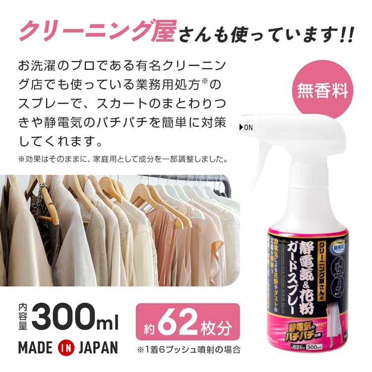 ●お出かけ前にひと吹き!静電気&花粉をガード。クリーニング屋さんが使っている業務用。