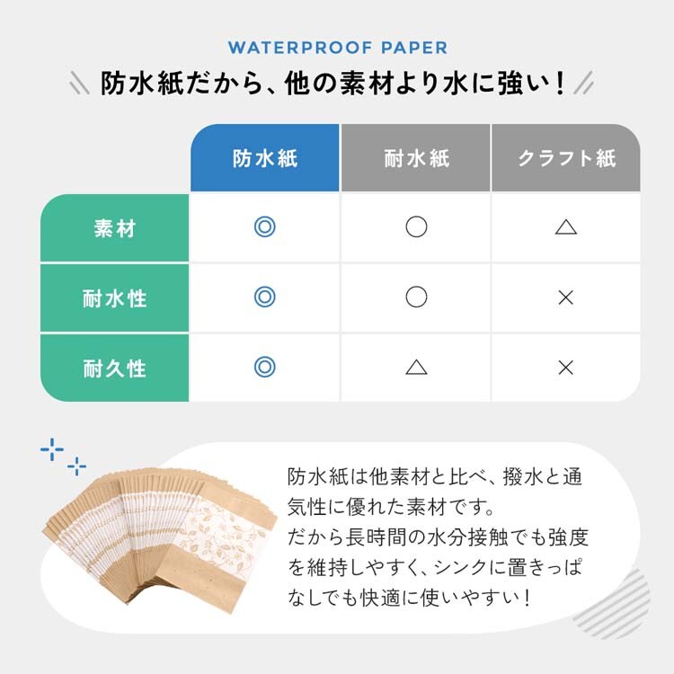●防水紙を使用しているので、生ゴミを入れた状態や水に濡れた状態でも型崩れしにくくなっています。