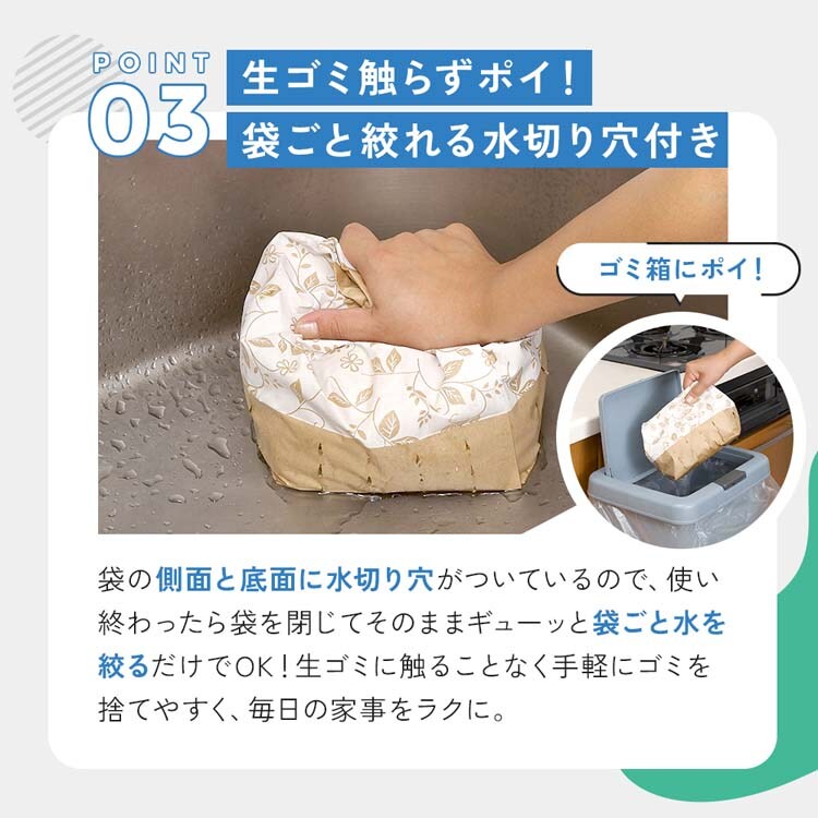 ●捨てる時は、紙袋ごと生ゴミを絞ってください。丈夫で破れにくいのが特徴です。