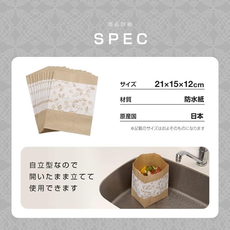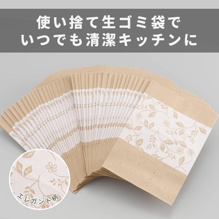 ●袋ごと水切りOK:丈夫で破れにくい防水紙を使用しており、生ごみを入れた状態でも型崩れしにくい!袋の底には水切り穴があるので捨てる時は、紙袋ごと生ゴミを絞ってください。
