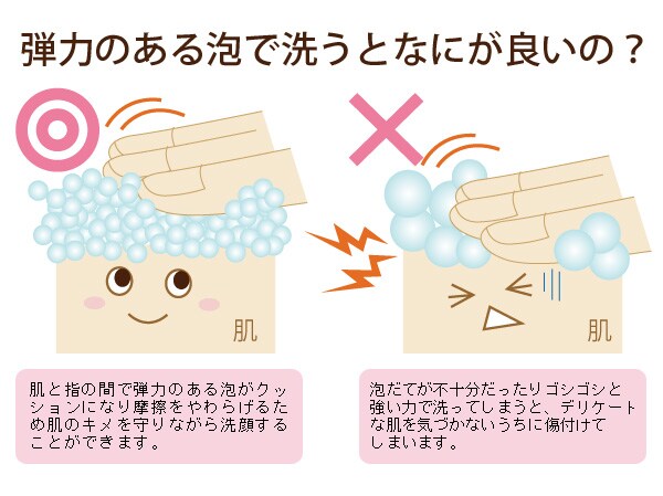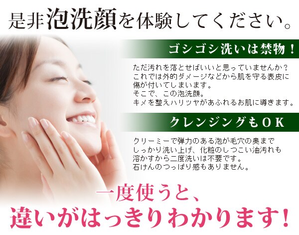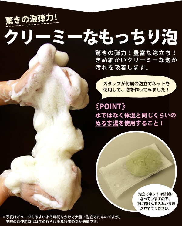 ・手のひらでよく泡立て(付属の泡立てネットを使えばさらに泡立ちが増します。)、その泡で顔を包み込むようにマッサージしながら洗い、その後十分にすすいでください。