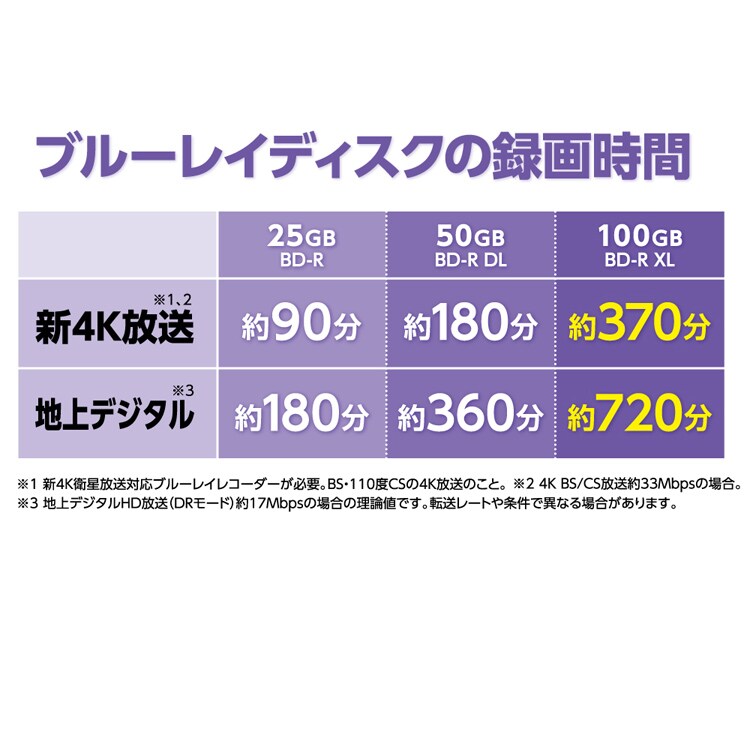 【バーベイタム 1回録画用 BD-R XL(片面3層/2-4倍速/100GB/20枚入り)VBR520YP20SD4の商品詳細】