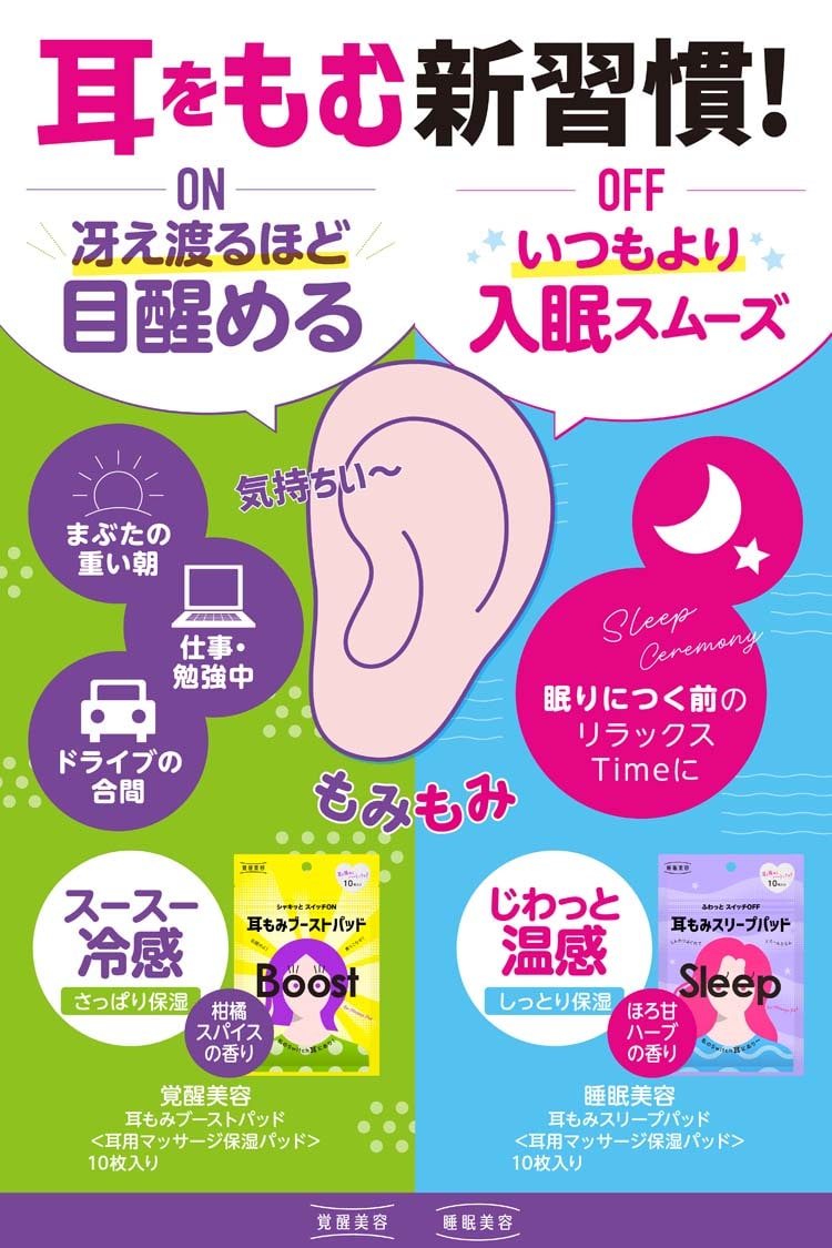 ●じんわりほぐして今日もぐっすり。入眠前のルーティンに、耳用マッサージ保湿パッド。