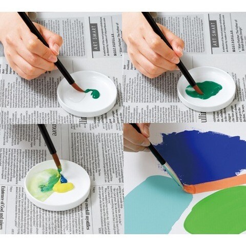 ・描く面の裏側に厚紙などを敷いて描いてください。ただし、絵具が乾燥する前に下敷きを取り除いてください。※下敷きには、引っ付きにくい紙やすり(粗目)がおすすめです。