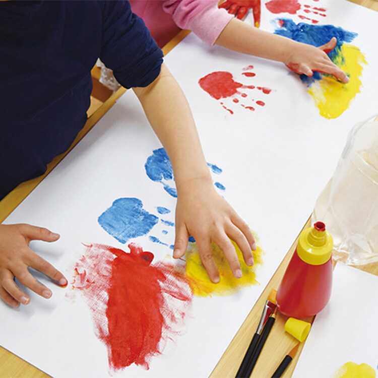 てのひらや指で、直接さわって絵が描ける、安心にこだわった水性絵具です。欧州玩具安全指令EN71の基準を満たし、パッチテストをクリアーしているので、安心して使用できます。発色が良く、手についた絵具は水・せっけんで落ちます。絵具の伸びが良いので、スルスル描けます。手で触った感じも滑らか、ヘンな臭いもありません。欧州玩具規格EN71-7・EN71-3適合。