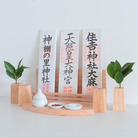 付属品の水玉と皿を本体のくぼみに置き、向かって左から水・米・塩の順番でお供えします。