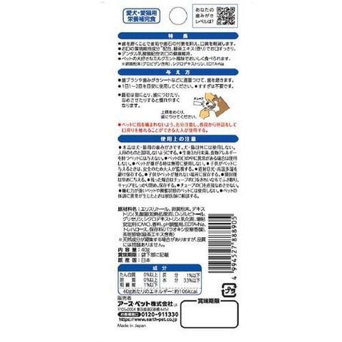 チューブから適量を出し、指などに取り、お口や歯につけて与えてください。お口の中に物が入ることに慣れたら、「エブリデント 歯みがきシート・ブラシ」につけ、軽くブラッシングしてください。
