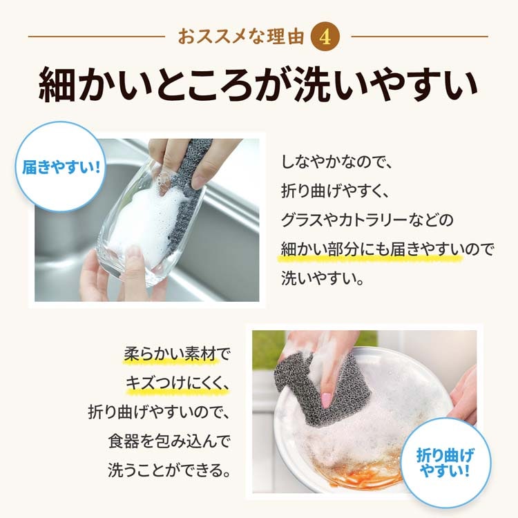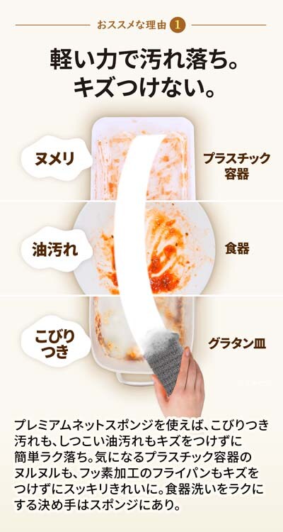 ●食器、調理器具、フッ素加工品をキズをつけません。