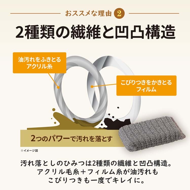 ●アクリル糸とポリエステルフィルムがいろいろな汚れを簡単に洗い落とします。