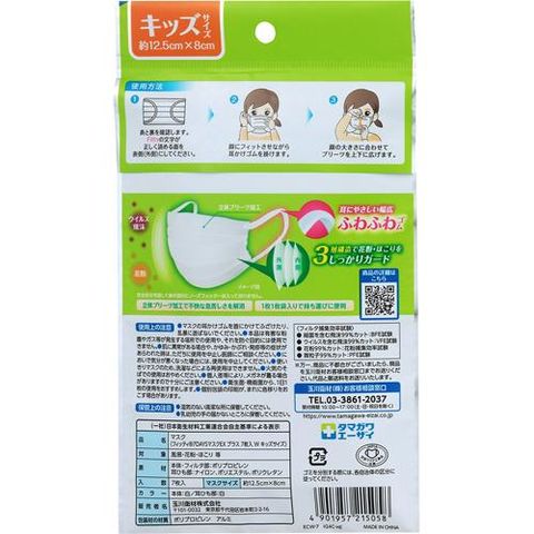 | ・本体・フィルタ部:ポリプロピレン ・耳ひも部:ナイロン、ポリエステル、ポリウレタン |