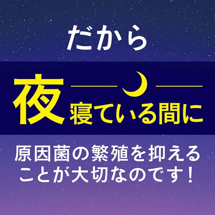 ※使用後、水ですすぐ必要はありません。いつでも使用できますが、おやすみ前の使用をおすすめします。本品はハミガキではありませんので、日常の歯みがきは行ってください。