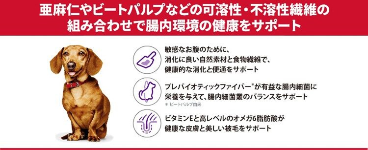 ●栄養バランスに優れた製品で、健康的な腸内環境と皮膚、そして美しい被毛をサポートする小型犬の成犬におすすめ