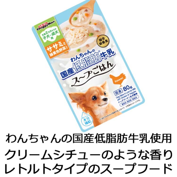 ドギーマン わんちゃんの国産低脂肪牛乳スープごはん ササミと緑黄色野菜入り (80g*6個セット)