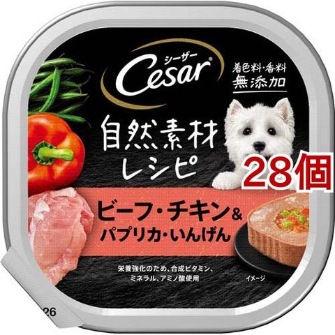 シーザー 自然素材 成犬用 ビーフ・チキンパプリカ・いんげん 無添加 ドッグ ウエット (85g*28個セット)