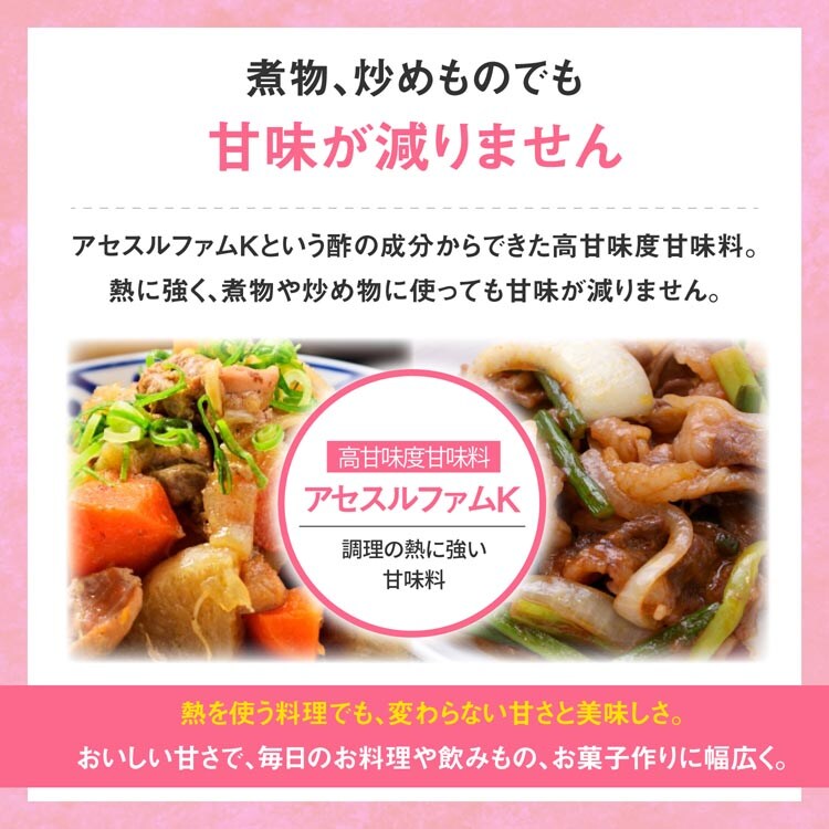 ●アセスルファムK(カリウム)は、酢の成分からできた甘味料です。