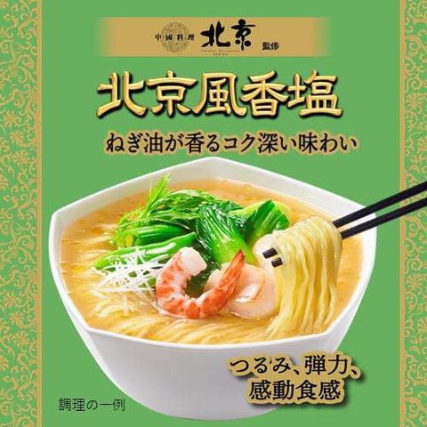 ●スープ:チキンをベースにホタテ、蝦醤、魚醤で仕立てた奥深い味わいのスープに、チキンオイル、ごま油、ネギのオイルを合わせた北京風の塩ラーメン。ホタテオイルが旨みを増し、本格的で香り豊かな味わい。