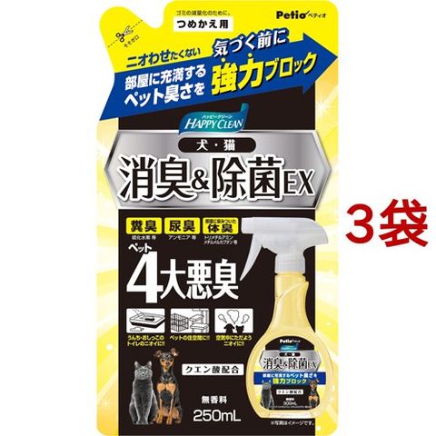 ペティオ ハッピークリーン 犬・猫ペット臭さ 消臭&除菌EX つめかえ用 (250ml*3袋セット)