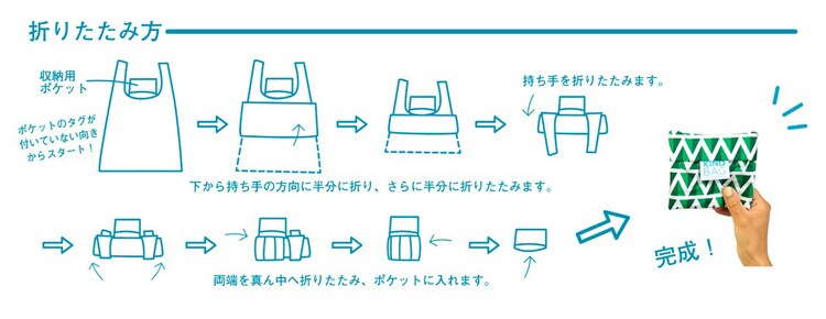 ●重さ40gと軽量で、本体内側についたポケットに小さく折りたたんで収納できるので持ち運びに最適です。耐荷重は10kgで、丈夫な縫い目と底のマチが広くなっているので沢山荷物を入れることが可能です。肩にかけた時に重さを分散するように持ち手が幅広になっています。