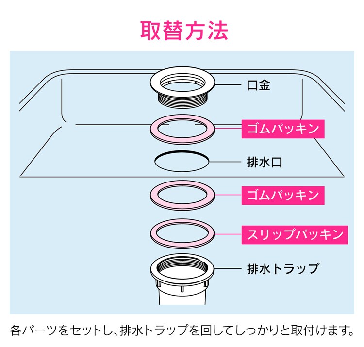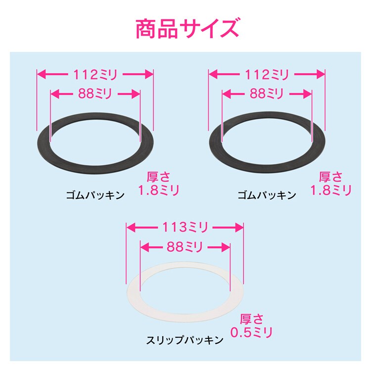 | ・セット内容:ゴムパッキン*2枚・スリップパッキン*1枚 |
