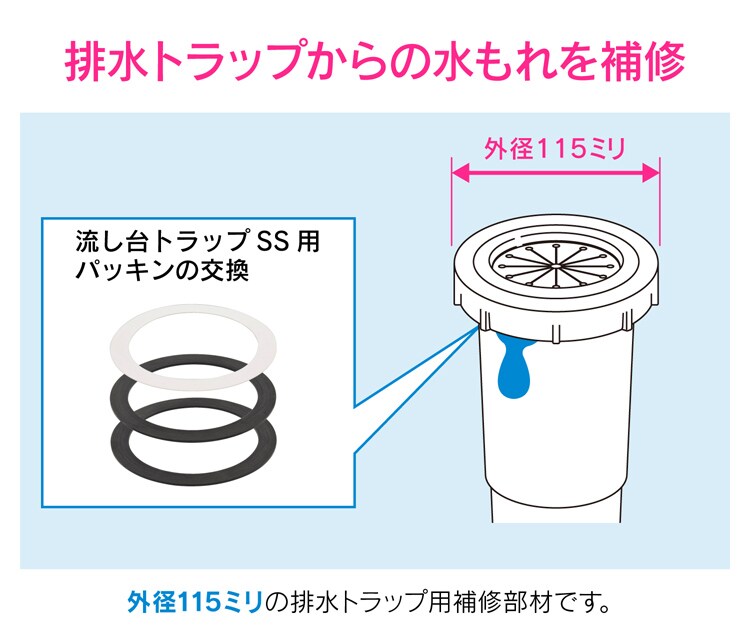 ●流し台トラップ(外径115ミリ)に使用できます。