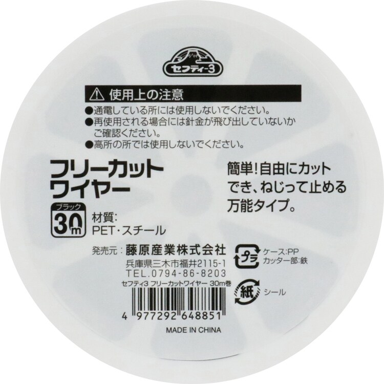 【セフティー3 フリーカットワイヤー 30m ブラックの商品詳細】