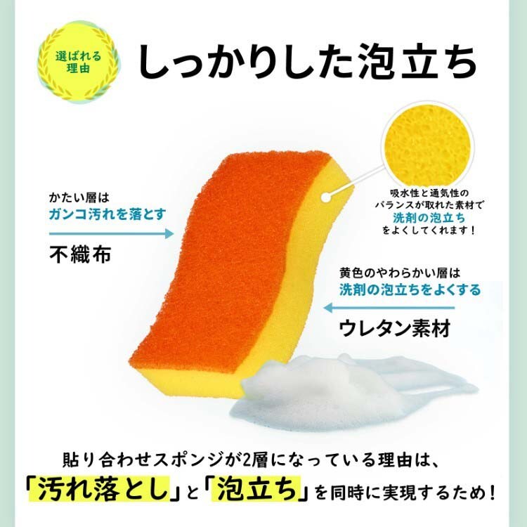 ●スポンジ素材自体に抗菌剤を練り込んでいるので、抗菌効果が持続します。