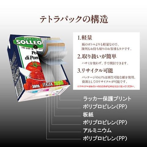 ●イタリアの太陽を浴びてそだったトマトを100%使用。