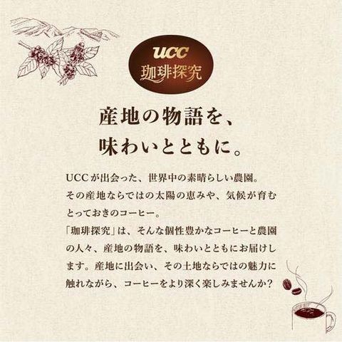 ●UCC珈琲鑑定士が世界中から原料を探し集め、一杯のためにこだわり究めた「珈琲探究シリーズ」。