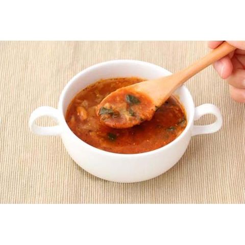 ●国産キャベツと玉ねぎを炒めて甘みを引き出し、隠し味にコチュジャンを入れたコク深い味わいのミネストローネです。
