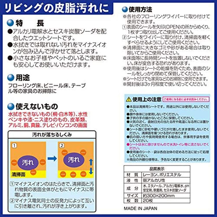 ●話題の「セスキ炭酸ソーダ」と「アルカリ電解水」を配合したお掃除シートです。