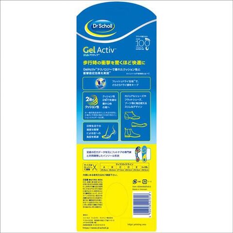 ・インソールをお使いの方は、ご使用のインソールを取り外し、ドクター・ショールジェルアクティブTMインソールをジェルの面を下にしてご使用ください。