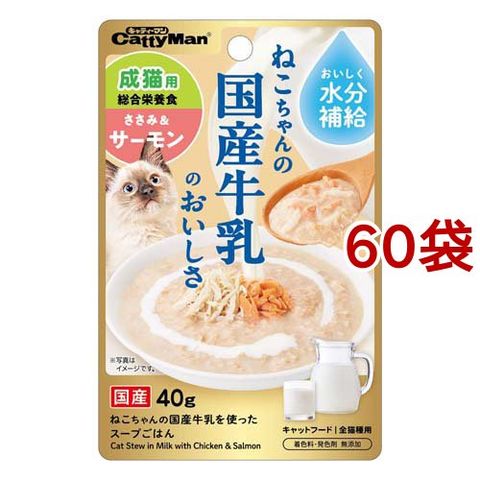 猫ちゃんの国産牛乳を使ったスープごはん ささみ&サーモン 成猫用 (40g*60袋セット)
