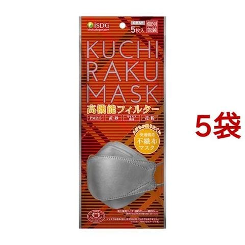 KUCHIRAKU MASK 個包装 グレー (5枚入*5袋セット)