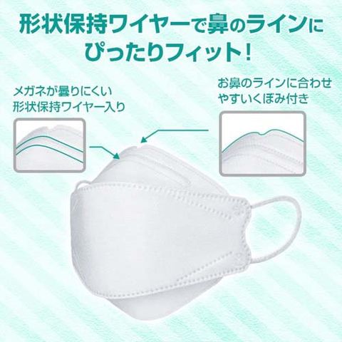| マスク本体・フィルター:ポリプロピレン、耳ゴム:ナイロン、ポリエステル、ポリウレタン、ノーズフィット:PE樹脂 |