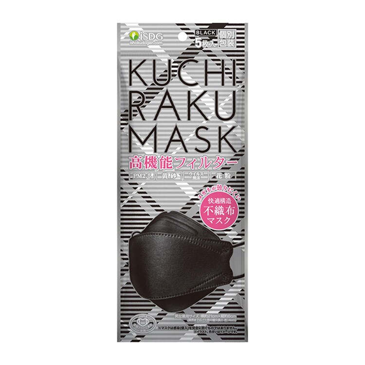 KUCHIRAKU MASK 個包装 ブラック (5枚入*5袋セット)