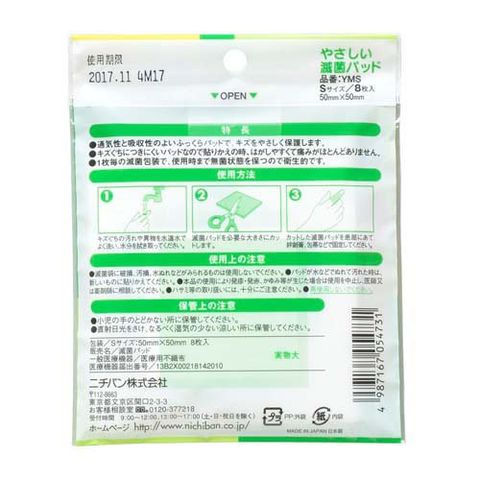 ・やさしい滅菌パッドの使用により発疹、発赤、かゆみ等が生じた場合は使用を中止し、医師又は薬剤師に相談してください。