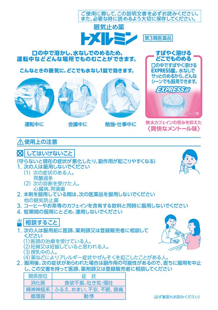 ●口の中で溶かし、水なしでのめるため、運転中などどんな場所でものむことができます。