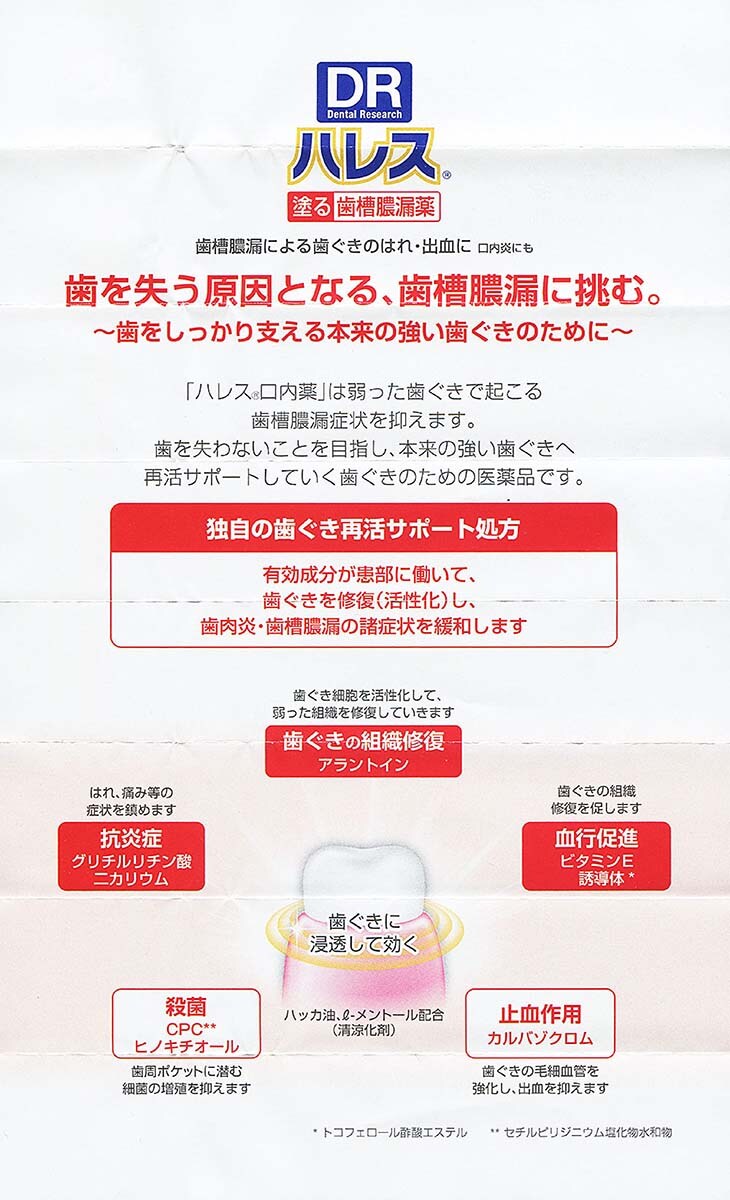 ●歯を失わないことを目指し、本来の強い歯ぐきへ再活サポートしていく歯ぐきのための医薬品です。
