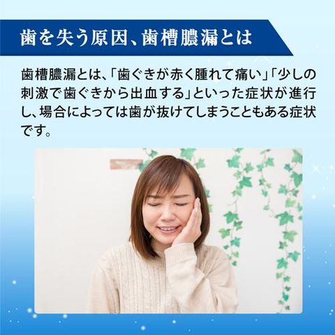 ●弱った歯ぐきで起こる歯槽膿漏症状を抑えます。