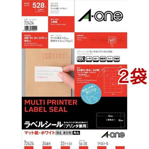 エーワン ラベルシール 宛名ラベル 24面 56×30mm 72424 (22シート×2セット)