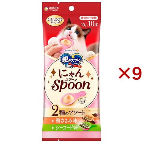 銀のスプーン おやつ にゃんSpoon 2種のアソート 鶏ささみ&シーフード味 猫用 (10本入×9セット(1本10g))