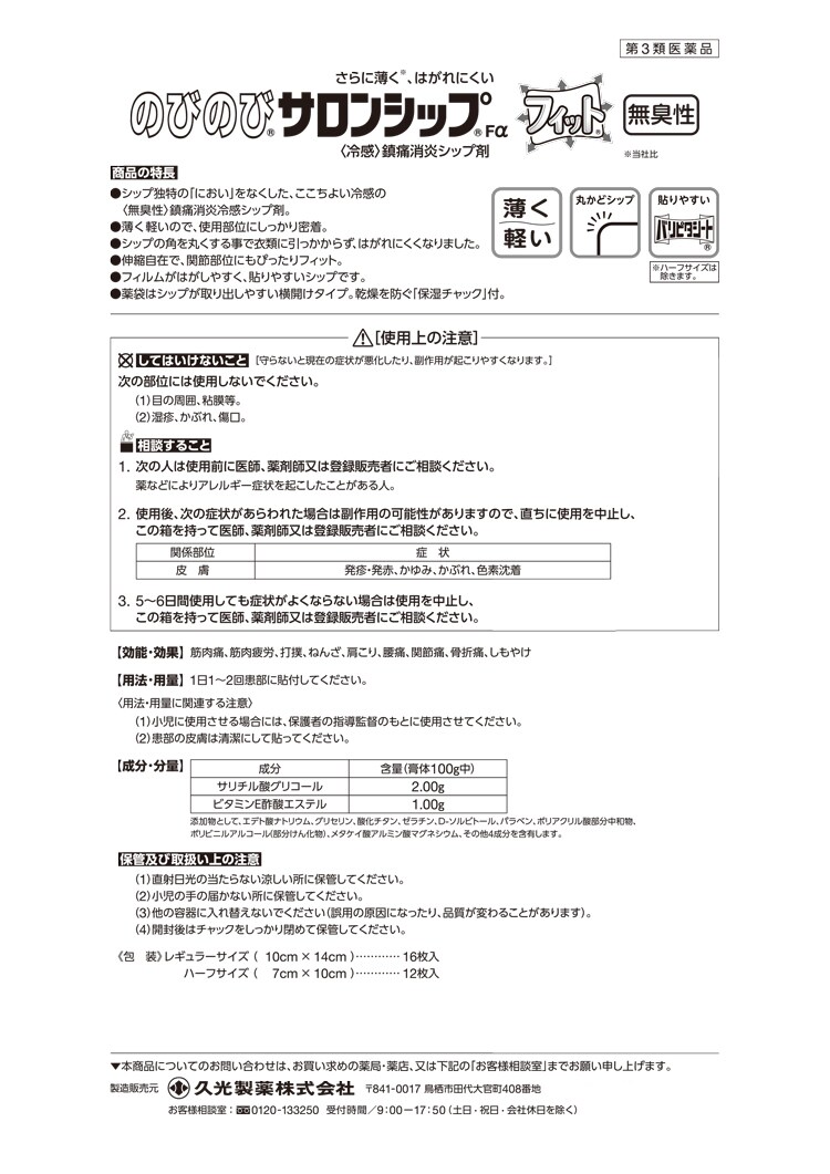 【のびのびサロンシップFα ハーフの商品詳細】