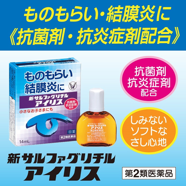 ●新サルファグリチルアイリスは、ものもらいや結膜炎の原因となる細菌に対して、すぐれた抗菌力を示す持続性抗菌剤「スルファメトキサゾールナトリウム」に、目の炎症やかゆみをしずめる成分を配合した目薬です。