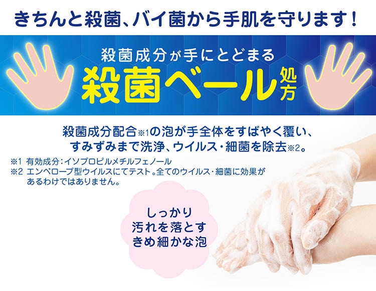 ●殺菌成分が手にとどまる、殺菌ベール処方。