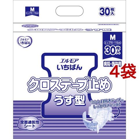 エルモア いちばん クロステープ止め うす型 M 病院施設用 (30枚入*4袋セット)