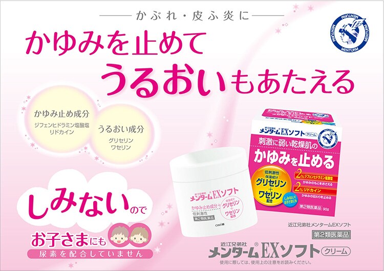・かゆみ止め成分のジフェンヒドラミン塩酸塩、リドカインがかゆみを止めます。