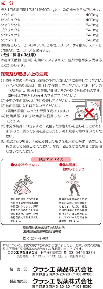 【第2類医薬品】クラシエ当帰芍薬散錠 (180錠*3箱セット)